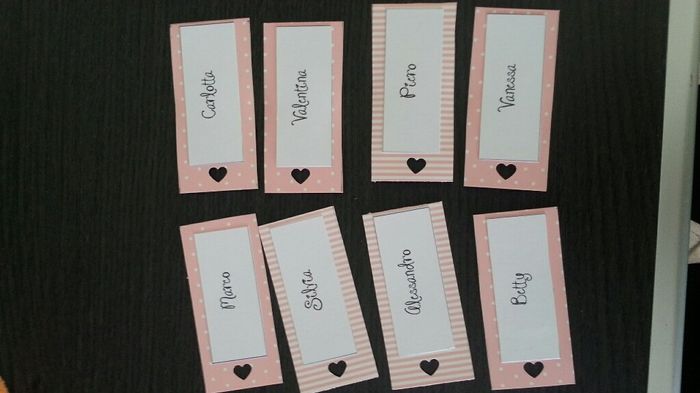 Ossia che scrivete voi dove far sedere gli invitati? I miei si attaccano ai bicchieri, e scriverò il nome di ognuno, per non avere confusione in sala del tipo che qualcuno non sia contento del posto che gli è capitato... Sono cose stupide ma avendo...