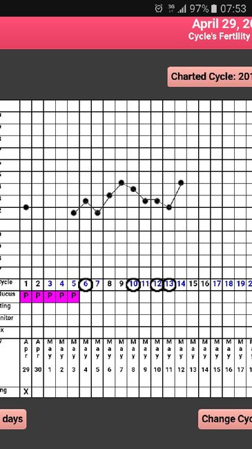 Ciao a tutte....questo è stato il nostro secondo tentativo e ora aspettiamo il verdetto finale...io ho un ciclo quasi regolare 26/27 giorni...quindi inizialmente il mio ciclo era previsto per il 29/30 aprile...segnato sia sulla app "il mio...