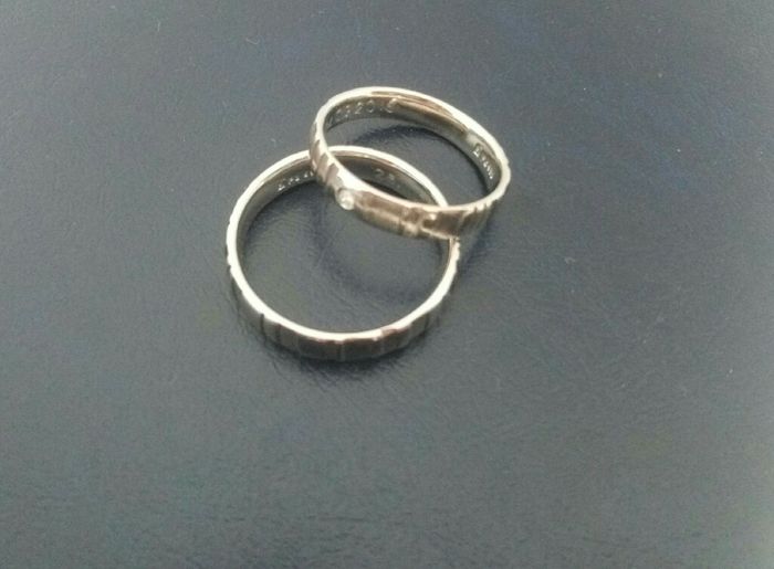 Finalmente oggi abbiamo ritirato le nostre fedi che non potevano che essere diverse dalle solite. Ce le ha fatte un amico orafo.. La mia ha una decorazione floreali sopra è sotto quella di fm ha 3 croci celtiche (lui è patito di templari etc)....