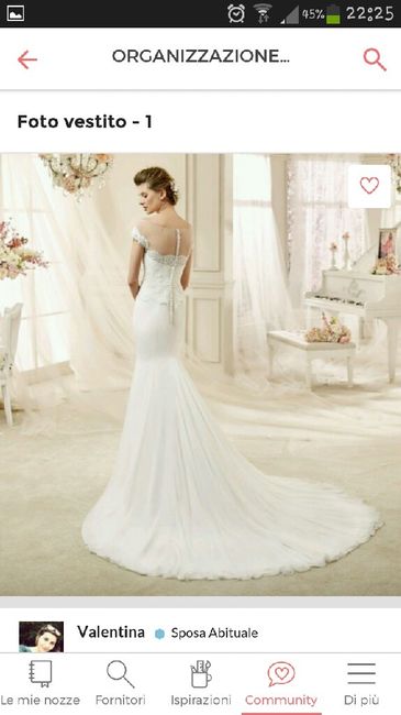 Ciao sposine a chi va di fare vedere le foto del proprio vestito? io ho la foto ma non ancora indossato da me. La farò alla prossima prova.