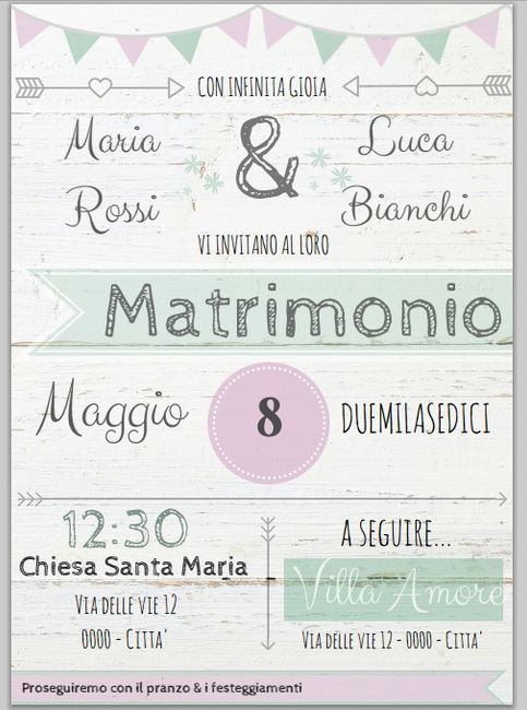 Ciao ragazze! Sto lavorando alle mie partecipazioni, volevo un parere da voi su questi due file (ovviamente con nomi posticci e luoghi inventati). Che ne pensate? Vi piacciono? Partecipazione matrimonio Partecipazione matrimonio