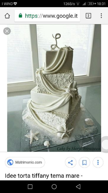 Salve a tutte, premetto che il mio matrimonio sarà tema mare, che ne pensate di questa torta? Io la trovo elegante