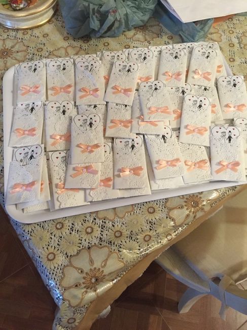 Ragazze vi piace il mio fai da te? Vi volevo chiedere un consiglio.... Siccome io voglio dare una wedding bag per famiglia...per evitare che tutti la prendano a caso, volevo scrivere i nomi dentro questi cuori...voi che dite? Ho paura che poi sembra...