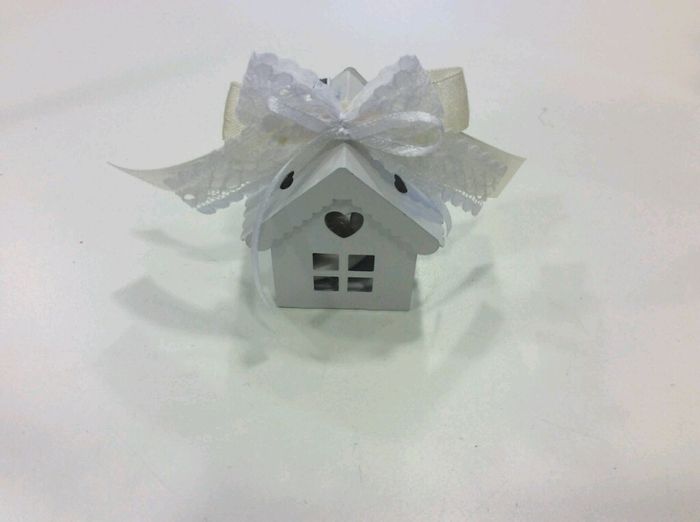 Ieri ho scelto la bomboniera!!! Si tratta di una casina portalumino! sarà confezionata con 2 fiocchetti al centro del tetto realizzati uno con un nastro bianco in pizzo e uno con nastro in raso grigio perla. Da qui mi è venuta in mente l'idea di...