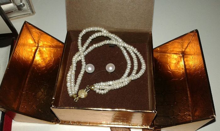 Ciao ragazze. ....oggi vorrei farvi vedere un regalo che mi doveva completare la mia mamma ma che purtroppo ho dovuto definire io......Lei mi diceva sempre quando ti sposerai con queste perle ti farò fare collana e bracciale.....l'ho fatto io al suo...
