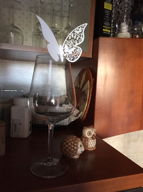 Rieccomi! Avevo scelto di usare l'albero a rami bianchi che mi da la villa come tableau.... Ma l'idea che fosse troppo rinsecchito... Ho cambiato con un vasetto con fiori finti dei colori del matrimonio, uno per tavolo, e le farfalle con nomi degli...