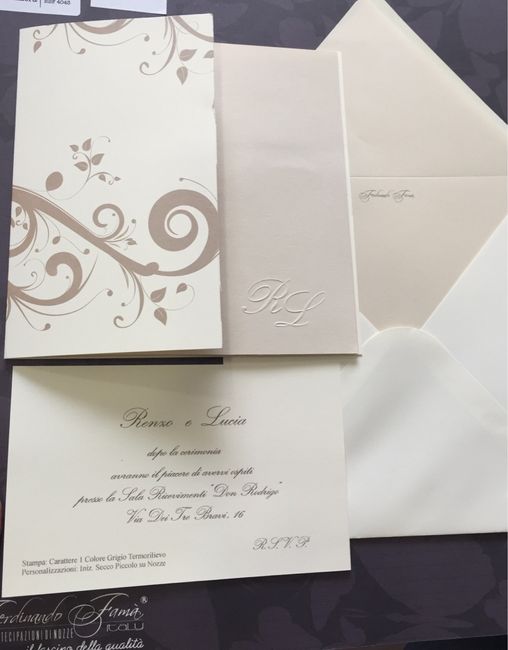 Buongiorno! Lunedì ci chiamano per andare a ritirare le partecipazioni, ieri le andiamo a prendere. Tutto ok.. Peró 1 le dobbiamo "montare noi" e 2 hanno sbagliato il colore dell interno busta... Vabbè.. Ci hanno detto che mercoledì ce li faranno...