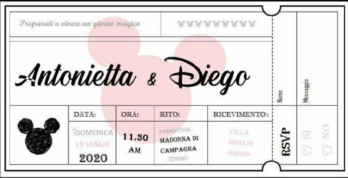 Dovrebbe rappresentare un biglietto d'ingresso al parco Disneyland, tema del nostro matrimonio. Grazie