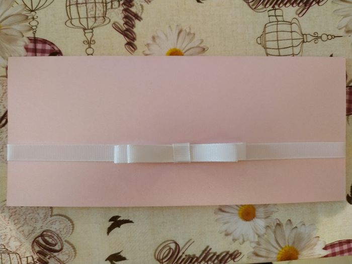 Ciao a tutte ragazze. Vorremmo mettere un nastro per chiudere le partecipazioni voi che dite, meglio grois grane bianco o organza bianco a pois (anche se in foto è rosa)? E il timbro dove lo mettereste? In alto a destra? O va bene dov'è?