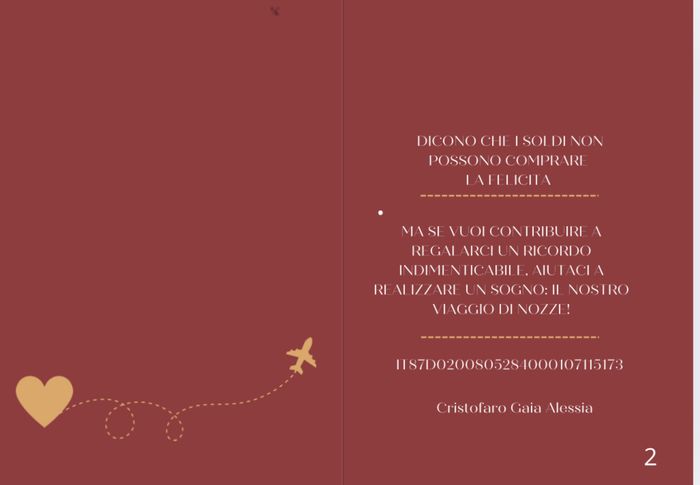 Ciao a tutti, vorremmo fare degli inviti interrativi, siamo indecisi se alla fine della pagina scrivere che preferiamo regalo in busta o tramite iban, o se risulta poco carino per chi lo riceve. Per noi sarebbe una questione di comodità, perché...