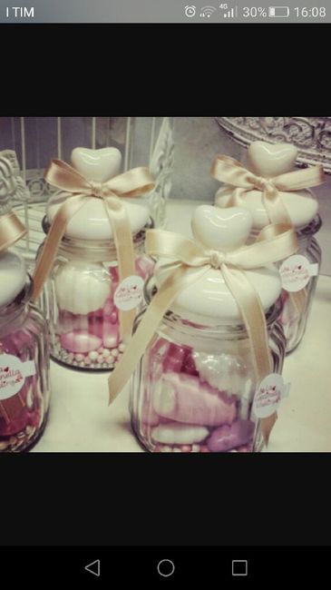 Ho ordinato oggi un campione di questi vasetti da 120ml, l`idea è di usarli come segnaposto con all`interno una degustazione di confetti. Che ne pensate? Ps: a me i vasetti arriveranno senza decori accetto anche delle idee sul fiocchetto :-)