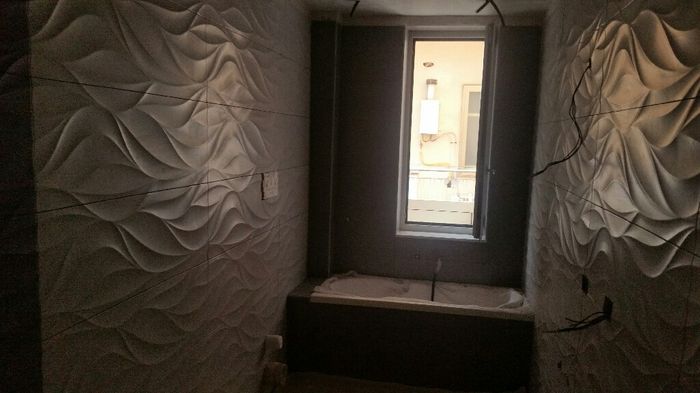 Ragazze questo é il rivestimento che abbiamo scelto per il bagno. Da premettere che ho un bagno rettangolare ed ho disposto in fondo la vasca, sotto la finestra. L'effetto é quello che si vede nella foto che ho scaricato da internet. Considerando che...