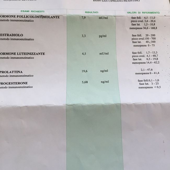 Buongiorno a tutte avrei bisogno di un vostro consiglio essendo che devo fare altri analisi ormonali sabato e quindi aspetto i risultati e poi vado dal ginecologo..secondo voi come sono i valori qst sono stati fatto al secondo giorno di ciclo mi...