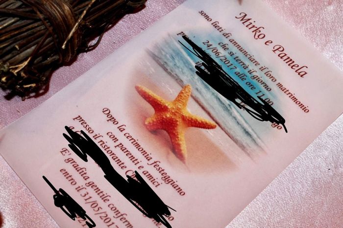 Ciao ragazze! Questo è il mio primo topic. Voglio solo condividere con voi le nostre partecipazioni interamente fatte a mano. L'interno cartaceo presenta da un lato i dati della cerimonia e ricevimento e dall'altro la cartina nautica della costa dove...