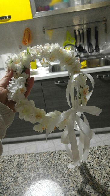 Le mie 3 damigelle indosseranno queste ghirlandine fatte fare apposta per loro Che ve ne pare? cucina in disordine a parte ahahaha 😂😂😂