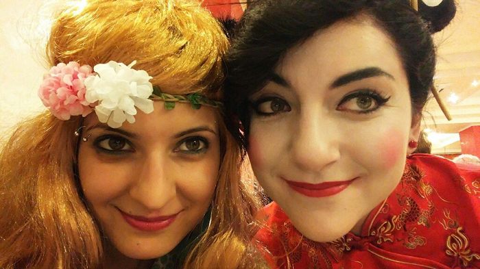 Eccoci! La prima foto l'abbiamo fatta sabato ad una festa in maschera, io ero travestita da Hippie e lei da geisha (vabbè si capisce 😂). La seconda foto è "vecchiotta" l'abbiamo fatta 6 anni fa mentre eravamo in viaggio per andare a vedere il nostro...