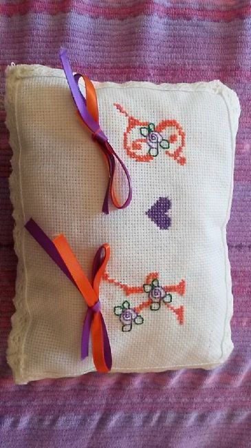 Adoro il fai da te e adoro il punto croce, con l'aiuto di una mia cara amoca ho realizzato dei sacchetti porta confetti è un cuscino porta fedi da favola..che ne dite?!?!