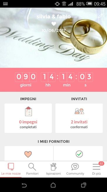 Buongiorno dolcissime, se avete deciso di compiere il grande passo, sicuramente avrete già deciso la data del vostro matrimonio, quanti giorni mancano al gran giorno? Per scoprirlo vi basterà impostare la data di nozze nel vostro...