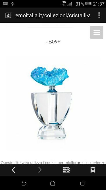 Ciao a tutte sposine volevo farvi vedere le bomboniere che abbiamo scelto io e fm! La prima è per gli invitati ed è un portaprofumo in cristallo,la seconda(tappo azzurro) è per i testimoni ed è sempre un portaprofumo in cristallo con pietra del...