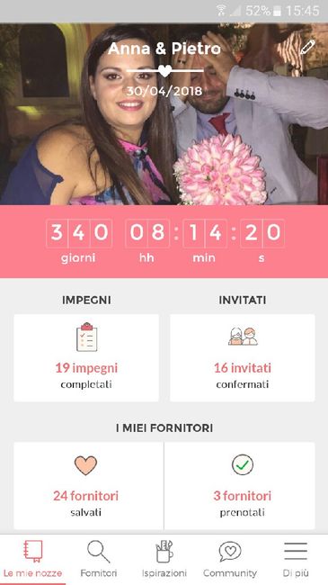 Ciao bellissime, siete pronte per continuare con il nostro giochino? Allora condividete la data delle vostre nozze! Scattate uno screenshot della app e caricatelo nel topic! *** Continuate con ---> Qual è la cosa più romantica che Fm ha fatto...