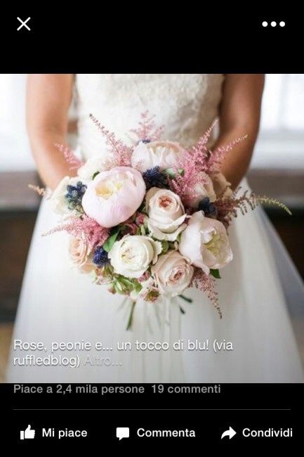 Ciao a tutte! Sono nel panico per il bouquet! Mi sposo a settembre e, come potete vedere dalla foto, sono molto giovane (ho 21 anni) La mia idea era un bouquet colorato, non sgargiante, ma colori tenui e pastello. Invece la mia fioraia mi ha...