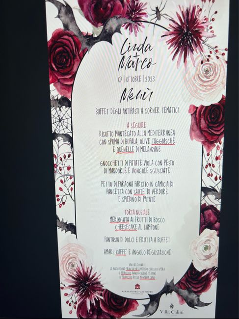 Ciao a tutte! Sto preparando i menù ho messo gli antipasti i primi i secondi... Voi avete scritto anche i titoli diciamo? antipasti, primi, secondi, contorno (crudite)? Per quanto riguarda il buffet di dolci e frutta torta nuziale bevande... Come...