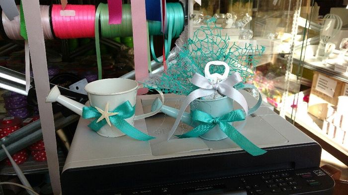 Finalmente sposine..Dopo aver chiesto e richiesto a tutte voi e aver girato e navigato in ogni dove...Ecco la confezione delle nostre bomboniere....più ke altro è simbolica...Visto ke facciamo la donazione... Ke dite?Tema acqua...L annaffiatoio mi è...