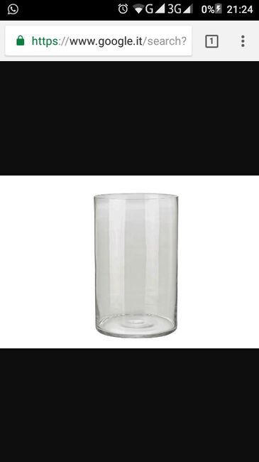 Buonasera ragazze, Abbiamo fortunatamente trovato a noleggio vasi e vassoi di vetro per i centrotavola. Il vaso è come quello in foto più oeno, quindi un cilindro alto, grande come un vero di quelli larghi. Il vassoio di vetro rotondo. Avremo...