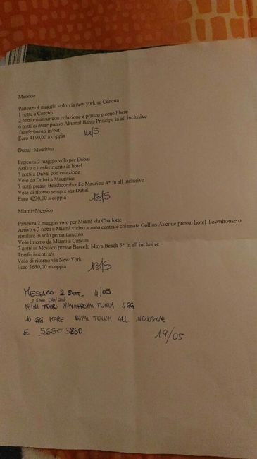 Buongiorno sposine! Siamo andati in agenzia per la seconda volta, e siamo usciti con 4 opzioni di viaggio. La prima mini Tour Messico+6giorni mare bahia principe, unica cosa scomoda scalo new York perché i charter diretti fanno voli settimanali e...