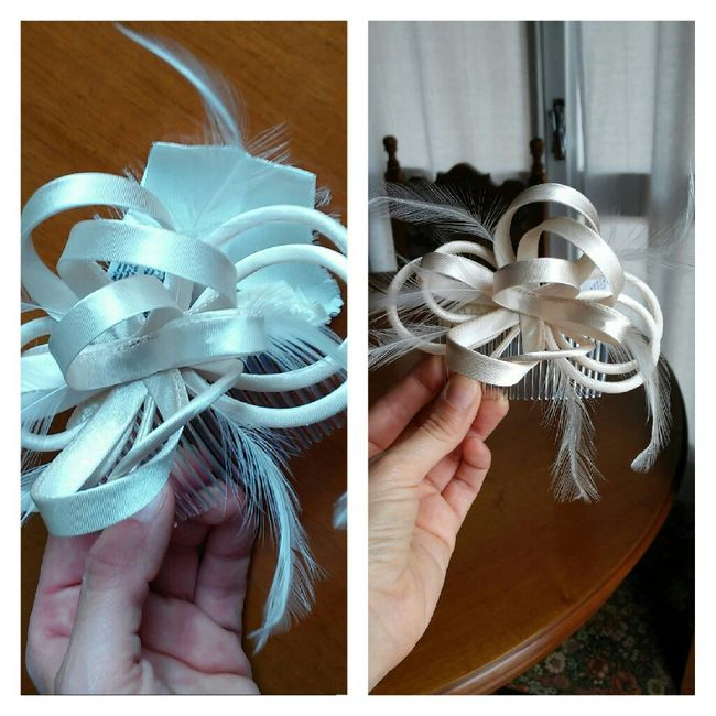 Ciao ragazze ieri a Milano ho trovato quello che probabilmente sarà il mio abbellimento x l'acconciatura, non pensavo di trovare qualcosa con le piume e invece l'ho trovato color avorio esattamente come il mio abito e con piumette. Sono proprio...