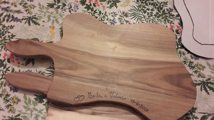 Ciao ragazze, dopo molti km per negozi a un mercatino di natale abbiamo conosciuto degli artigiani che intagliano il legno e da lì l'idea di fare far dei taglieri su misura. Questa è la prova, la sagoma l'ha disegnata il mio ragazzo, il tagliere è in...
