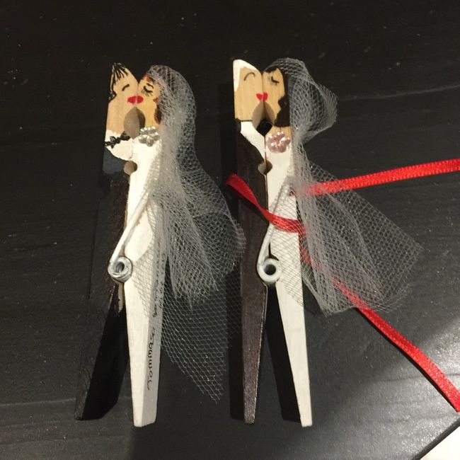 Mollette di fronte Mollette dal di dietro finalmente sono riuscita a finirle!!!! Cosa ne pensate?!?! io le immaginavo proprio così. Metterò poi un nastrino rosso e bianco per fermare la farfalla fustellata dove scriverò il nome dell'invitato!!!! ...
