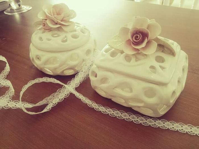 Ciao sposine da premettere che sono foto scattate molto da vicino e quindi da l impressione più grande rispetto dal vivo...questa è la bomboniera di matrimonio che ho scelto di porcellana bianca...vi dico che da vicino rende di più...può essere...