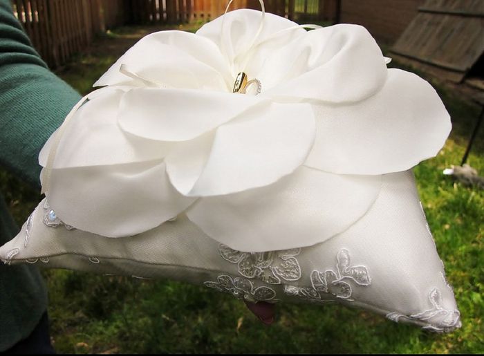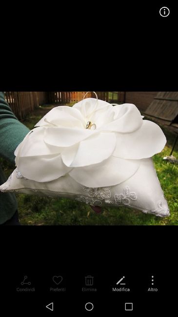 Buonasera a tutte 😊 manca sempre meno al big day ed oggi finalmente è pronto il prototipo del portafedi. É una rosa realizzata in organza rosa chiaro. I nastrini per le fedi saranno verdi. I nostri colori. Che ne pensate?