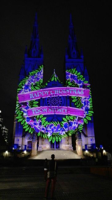 Ciao a tutti! A due mesi e mezzo dal matrimonio eccoci in Australia!!!💖 Che strano vedere addobbi natalizi in giro mentre si sta a maniche corte! Qui i giochi di luce alla cattedrale di Sydney.