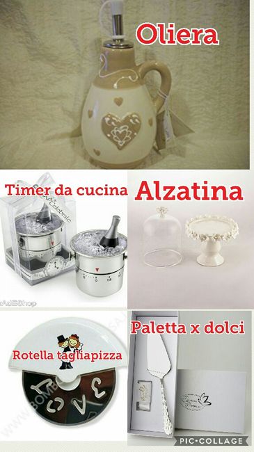 Oggi sono andata a vedere le bomboniere e forse ho trovata quella giusta, è questa e comprende un porzionatore x gelato, uno spremiagrumi, una paletta x torta, e una rotella tagliapizza.