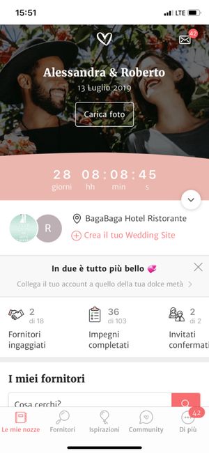 2503 giorni faCiao future sposine da martedi ho iniziato a fare il giro chiamate per le conferme...e cosa molto positiva tutti hanno detto si 😍😍 mancano solo 3 famiglie entrambe composto da 2 persone) a doverci dare conferma ma sono positiva anche su di loro e...