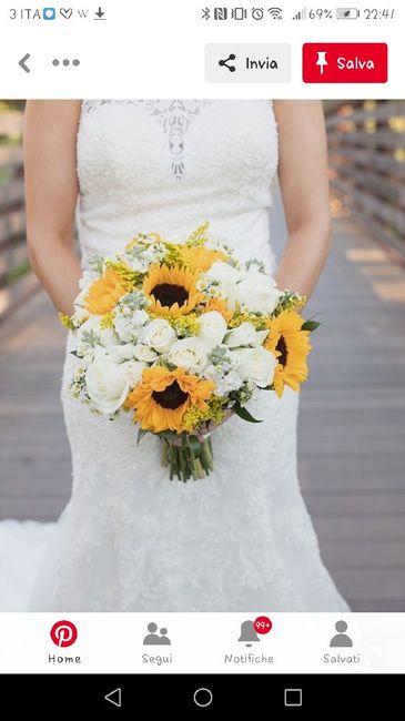 Ciao a tutte! vorrei ricevere un consiglio sul bouquet da sposa: mi piacerebbe fosse tondo piccino (io sono minuta) e che ci fosse almeno un girasolino, ma la fiorista me lo ha sconsigliato in quanto il mio abito è a sirena molto elegante di pizzo e...