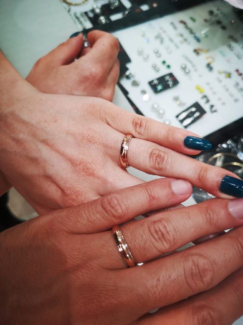 Ieri abbiamo provato le nostre fedi, prima di mandarle a incidere.. Sono stupende le adoriamo! Dalla foto si vede male sono in oro rosa bordate in oro bianco e la mia ha il brillantino! 😍 Non vedo l'ora di ritirarle... E oggi -90 ❤️