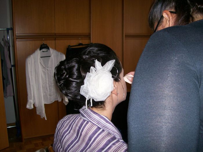 Ragazze ciao a tutte!!! finalmente ci siamo sposati ed è stato tutto fantastico!!! Vi lascio qualche fotina amatoriale, prima che arrivino quelle "ufficiali" del fotografo. L'acconciatura in primo piano, col fiore di seta fatto dalla mamma di un mio...