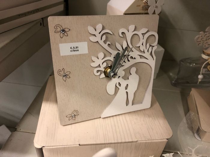 Buongiorno a tutte, abbiamo scelto e fatto realizzare la nostra bomboniera. Che ne dite, vi piace? A noi piace molto, anche se c'è chi ha storto il naso 😆 qualcuno ha scelto un orologio come noi??