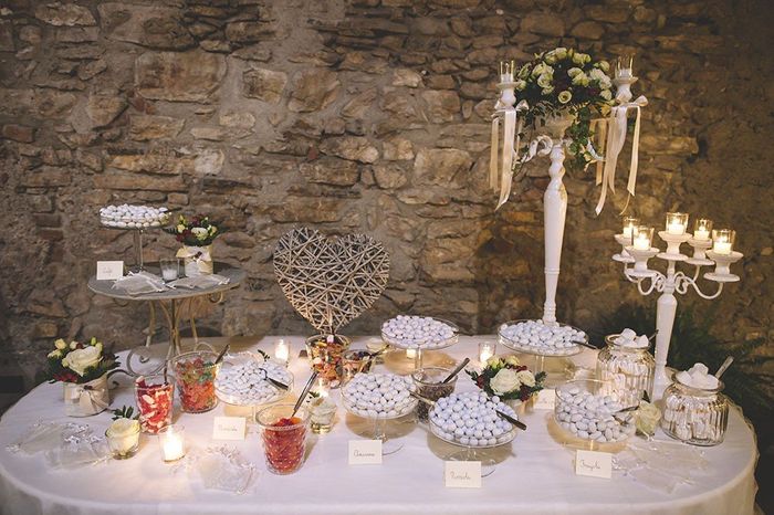 Altro dubbio sul tavolo confettata: lo farete insieme alla torta o fue tavoli separati? a me piace molto l’idea come in foto del tavolo lungo, tralasciando la parete con i fiori che mi sembra un po’ “troppo”