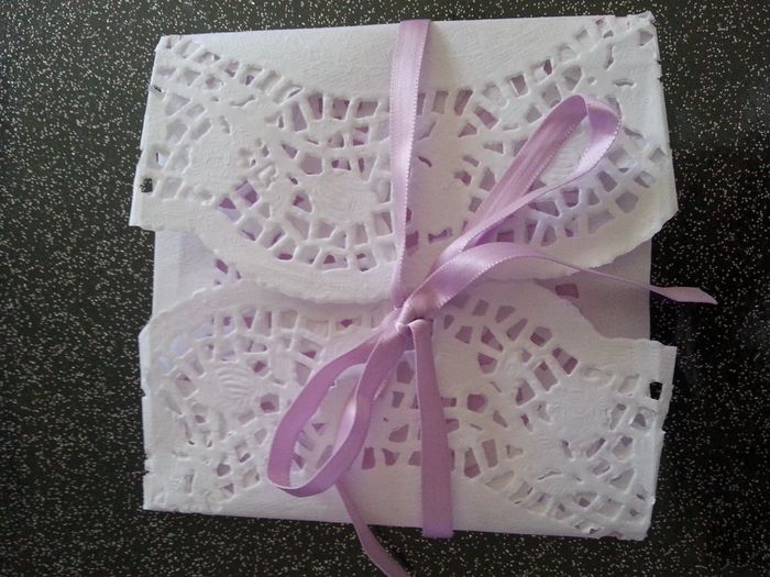 Ciao bellezze! Chi come me ha realizzato a mano le partecipazioni utilizzando i centrini di carta? Queste sono le mie!