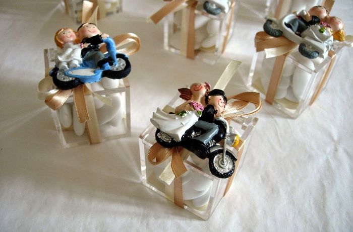 Ciao a tutti, per le nostre bomboniere avevamo pensato a delle piantine grasse ed una calamita (due cuori sposini con scritti nomi e data, fatti da me in fimo) Al posto dei cuoricini però vorrei fare delle moto calamite con dietro un cartello con...