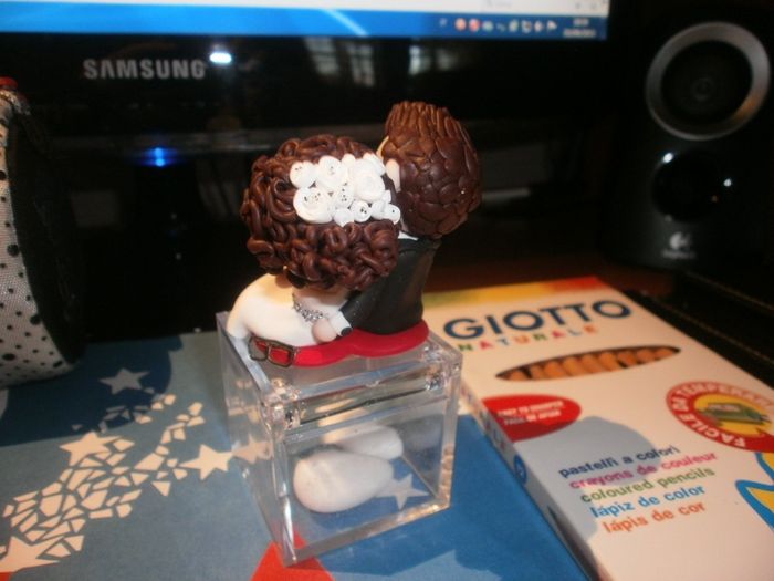 ciao ragazze... guardate cosa mi sono fatta fare? una bomboniera in fimo con io e il mio bellissimo Mimmo!!! che ne dite? non è perfetta?