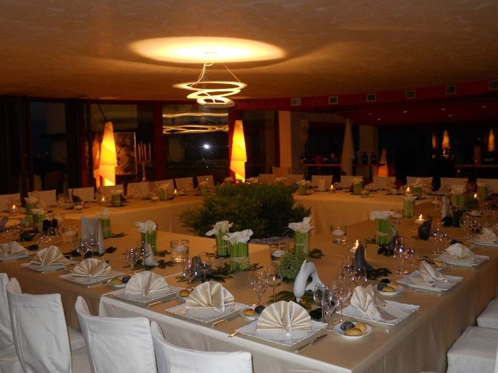 Io ho una domanda.. Ma perché nessuno al ristorante mette i tavoli a ferro di cavallo? Io penso di metterli così se ci stanno.. Con tutti i tavoli rivolti verso il lago! Così non dovrei fare neanche il cartellone con i nomi dei tavoli.. Ma solo i...
