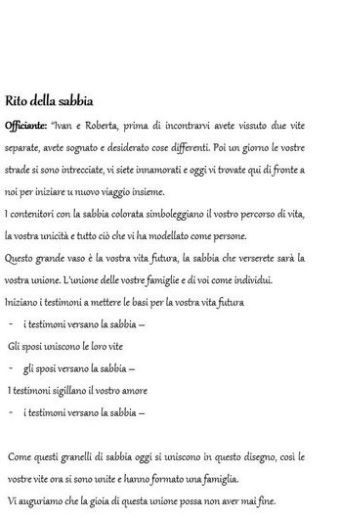 SALVE A TUUTI/E! Mancano pochissimi giorni al fatidico giorno, super emozionata! Per la cerimonia che si terrà civilmente abbiamo deciso di aggiungere il rito della sabbia. La nostra idea è quella di coinvolgere i nostri genitori,quindi avremo 3 vasi...