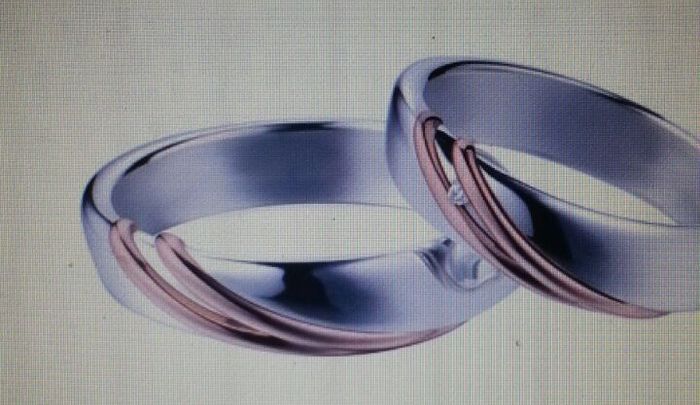 ecco le nostre fedi polello in argento oro rosa e diamantino. non vedo l ora di indossarla