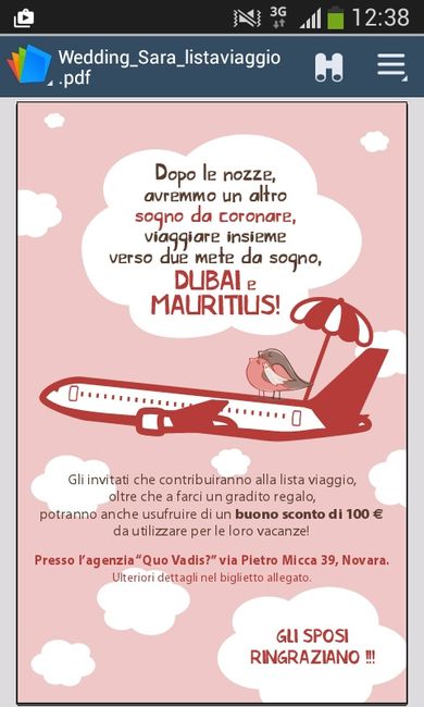Ciao ragazze! la nostra agenzia viaggi ci ha comunicato che ogni invitato avrà diritto a 100 euro di buono sconto da utilizzare in agenzia e lo volevo scrivere nelle biglietto o è una cattiva idea e è meglio che lo sappiano contattando l'agenzia?