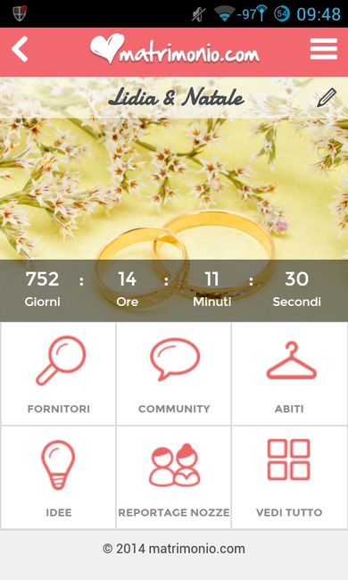 Buongiorno ragazze, buon lunedì! Una nuova settimana è appena iniziata e il countdown della app di matrimonio.com segna meno giorni al matrimonio. Ma a voi quanto manca? Scaricate la app di matrimonio.com: iPhone App Android App...